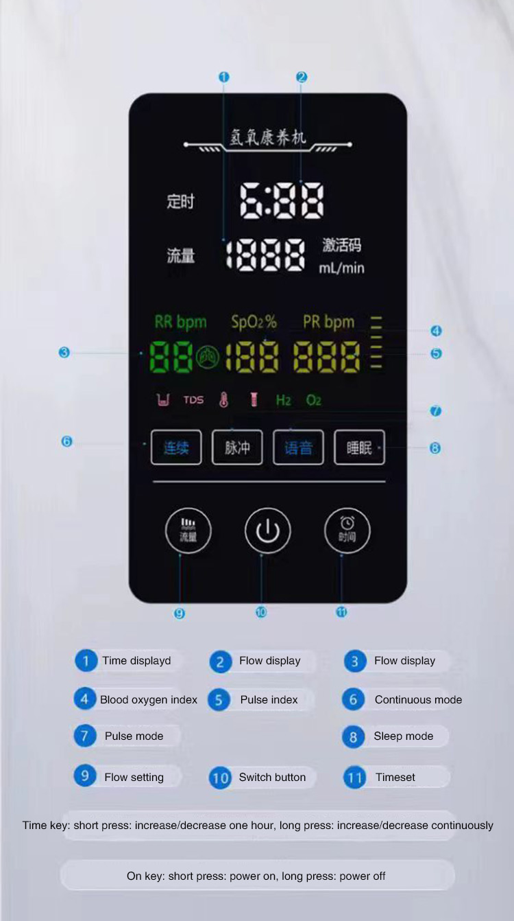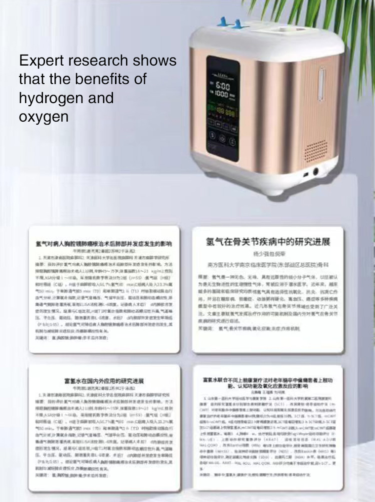 Product Features: 1. Can produce hydrogen and oxygen at the same time 2. Hydrogen absorbing machine, household hydrogen production machine, electrolytic water machine, hydrogen-rich water machine, household high-concentration intelligent hydrogen production machine.